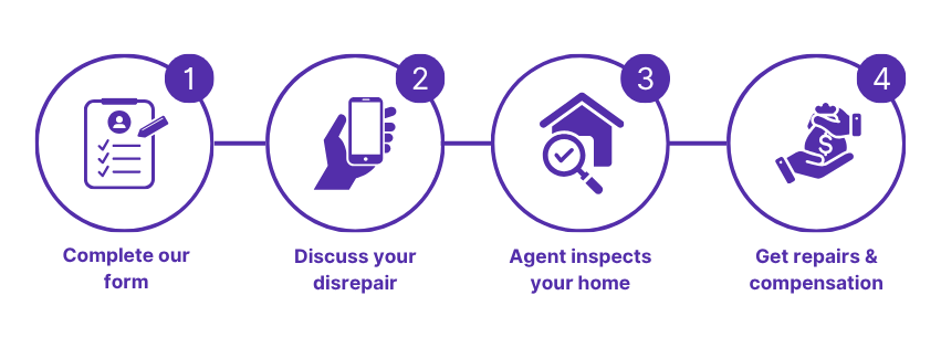 The claim process can take anywhere from a couple of weeks to 12 months depending on your landlord. We will however press your landlord to make sure they commence repairs without delay following our initial contact. You can rest assured there will be no delays on our part, we will do everything we can to get your landlord to take action.